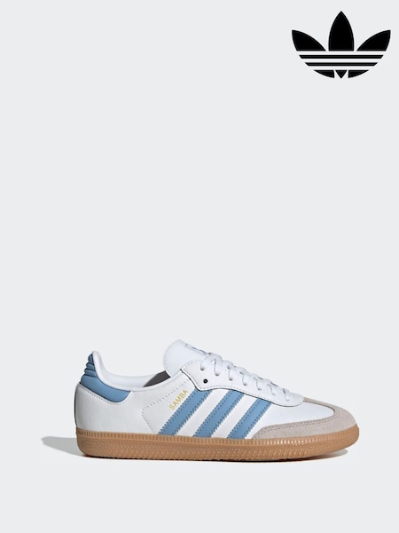 adidas Originals White/Blue/Grey Samba OG Junior Trainers