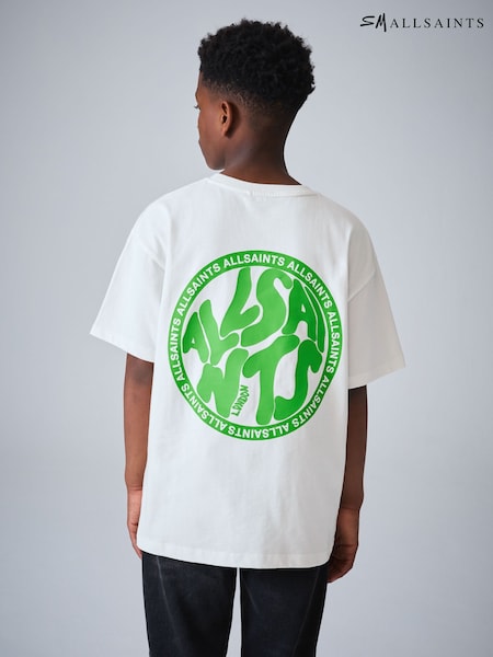 smALLSAINTS White/Green Oversized Distortion Crew Neck Cotton T-Shirt