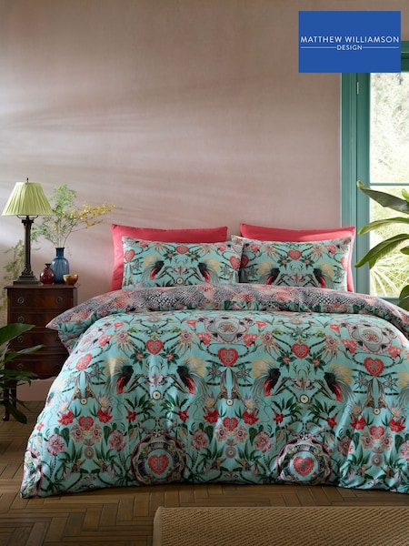 Matthew Williamson Teal Xanadu Peacock Cotton Sateen Duvet Cover Set