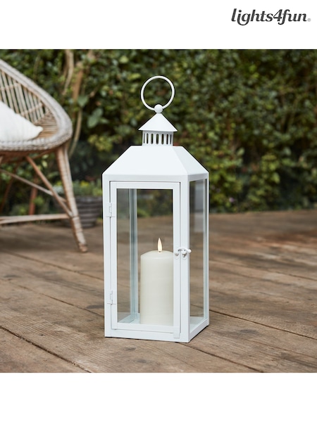 Lights4fun Perth Medium White Garden Lantern with TruGlow Candle and Remote Control
