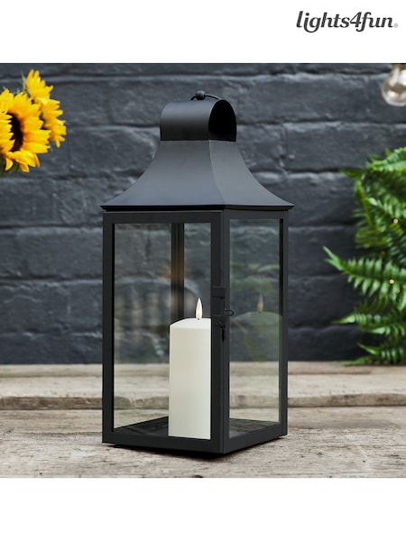 Lights4fun 45cm Albury Black Garden Lantern with TruGlow Candle