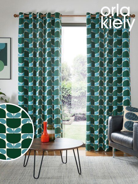 Orla Kiely Green Botanica Blackout Eyelet Curtains