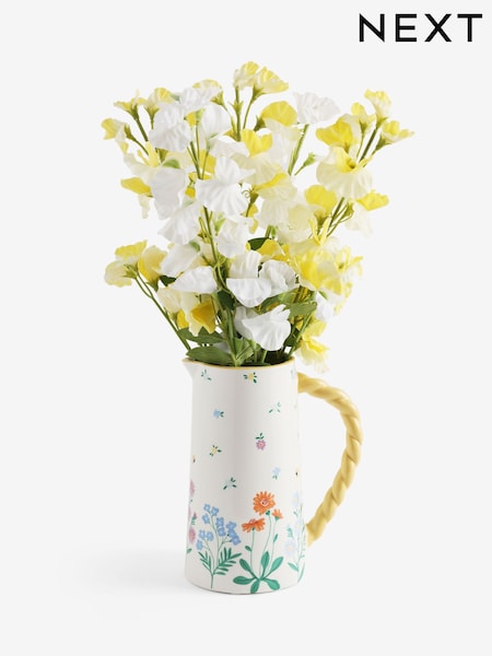 Yellow Artificial Sweet Peas in Ceramic Jug