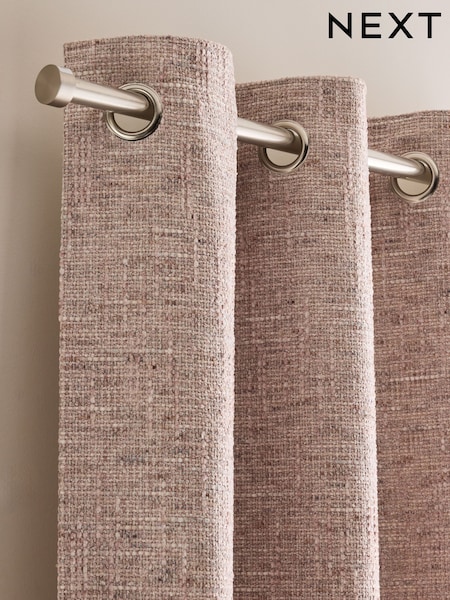 Pink Textured Chenille Lined Eyelet Curtains
