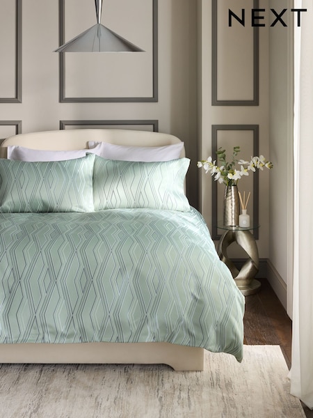 Sage Green Diamond Jacquard Duvet Cover and Pillowcase Set