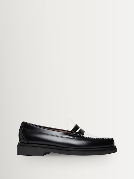 G.H.Bass Black & White Leather Weejun Step Larson Moc Penny Shoes