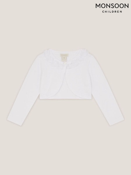 Monsoon White Communion Ottilie Appliqué Rose Cardigan