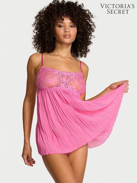 Victoria's Secret Rose Garden Pink Lace Pleated Babydoll Set