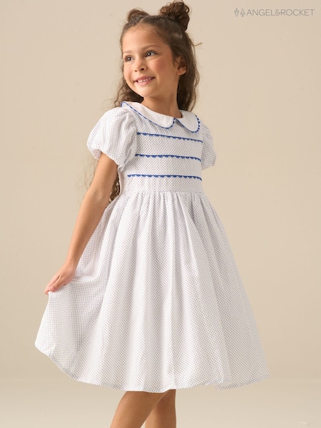 Angel & Rocket Blue Lottie Spot Puff Sleeve Dress