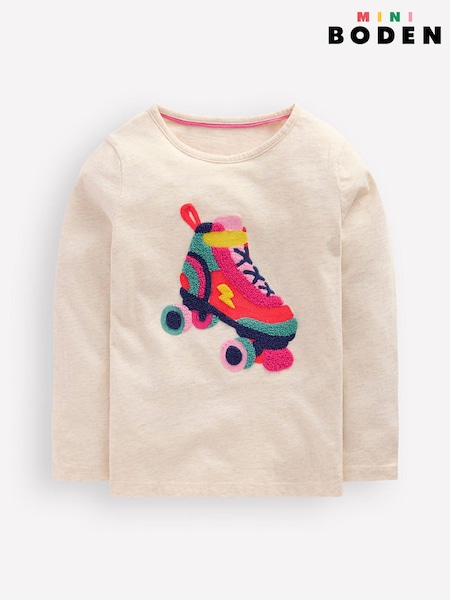 Boden Cream Long Sleeve Bouclé T-Shirt