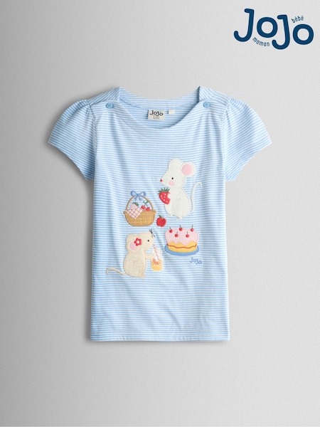 JoJo Maman Bébé Blue Appliqué Button Shoulder T-Shirt