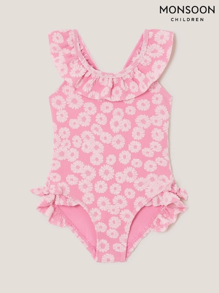 Monsoon Pink Baby Floral Jacquard Swimsuit