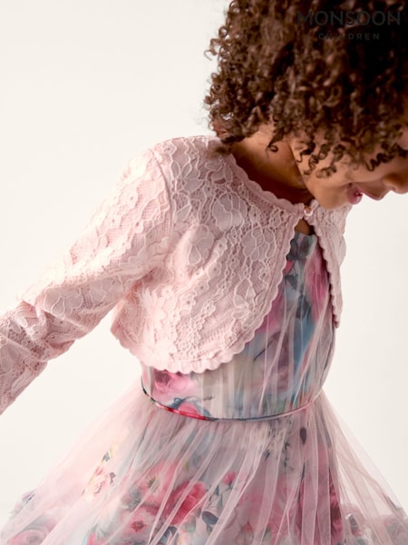 Monsoon Pink Emilia Lace Scallop Cardigan