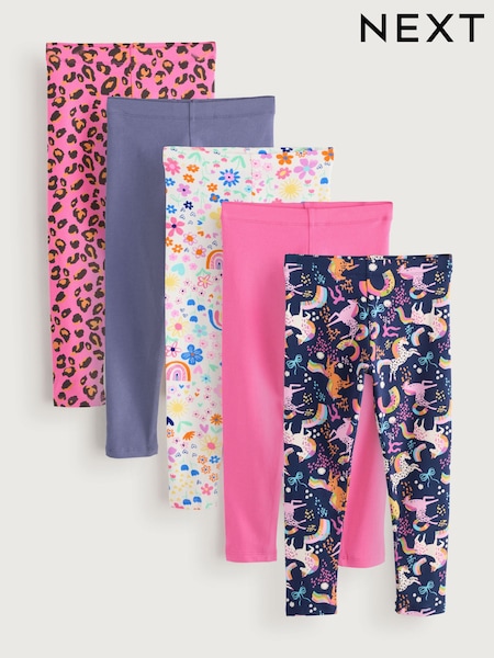 Pink/Rainbow/Animal Leggings 5 Pack (3-16yrs)