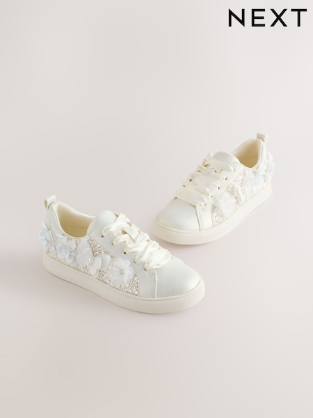 Silver Glitter Butterfly Occasion Lace Up Trainers