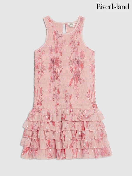 River Island Pink Chiffon Hem Rara Dress