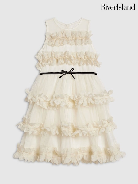 River Island Cream Flower Tulle Tiered Dress