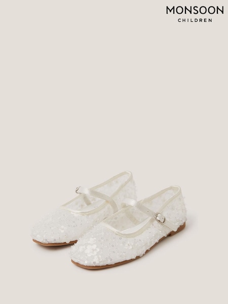 Monsoon Cream Flower Sparkle Mesh Ballet Flats