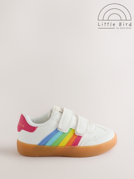 Little Bird by Jools Oliver White Younger Gum Sole Trainers with Rainbow Stripe