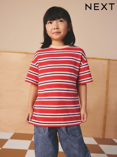 Blue Stripe Textured Oversized T-Shirt (3-16yrs)