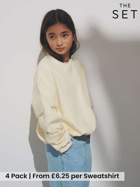 The Set 4 Pack Cropped Elasticated Hem Crews Sweat Top Yellow/Blue/Green/Brown