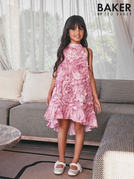 Baker by Ted Baker Pink 3D Textured Floral Halter Dress