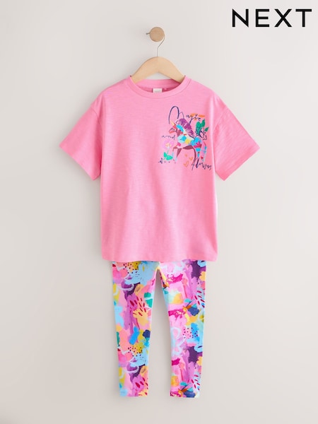 Pink Floral Unicorn T-Shirt and Leggings Set (3-16yrs)