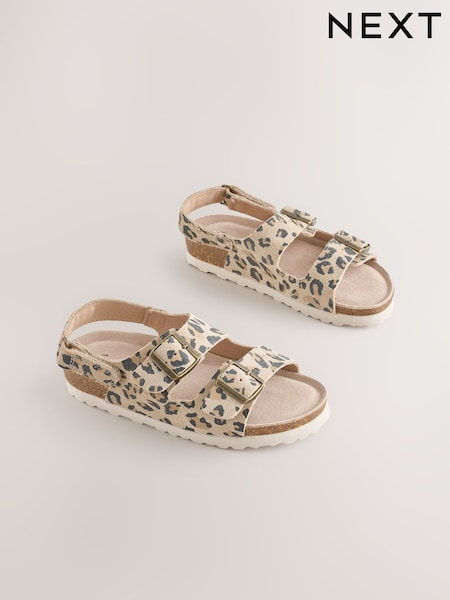 Tan Brown Leopard Print Standard Fit (F) Touch and Close Corkbed Sandals