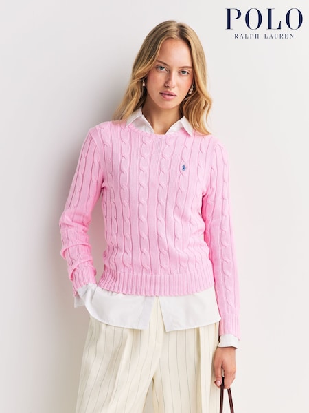 Polo Ralph Lauren Pink Julianna Long Sleeve Cable Knit Jumper