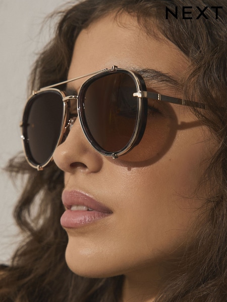 Friends Like These Gold Classic Metal Frame Aviator Sunglasses