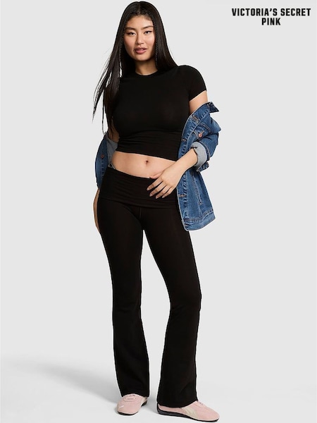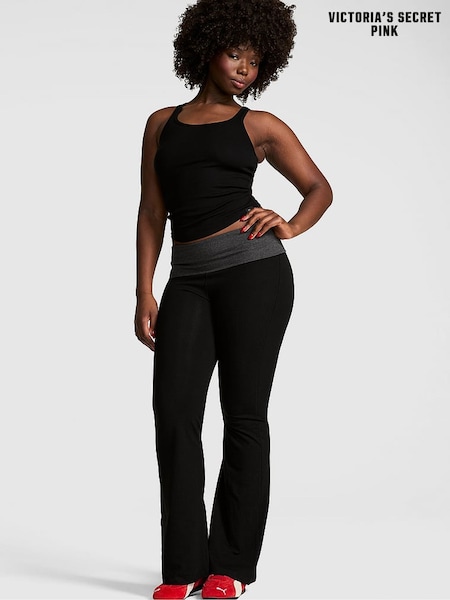 Victoria's Secret Black Cotton Foldover Flare Leggings