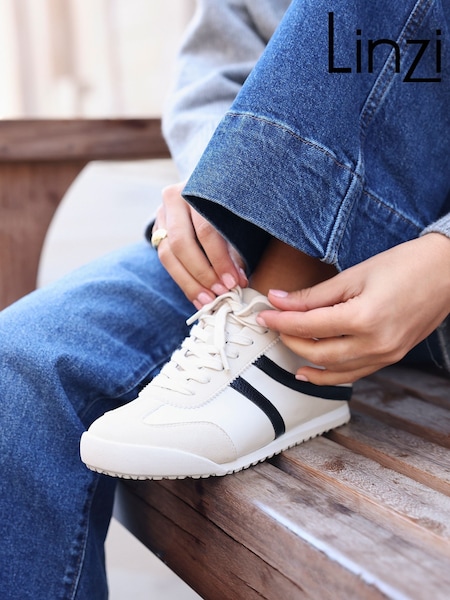 Linzi Cream Strike Slim Lace-Up Trainers