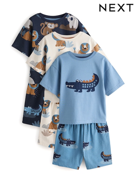 Blue/Ecru Safari Animal Short Pyjamas 3 Pack (9mths-8yrs)