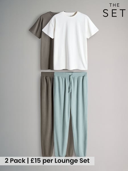 The Set 4 Piece Relaxed Fit TShirts and Waffle Loungepants Set Chocolate Brown