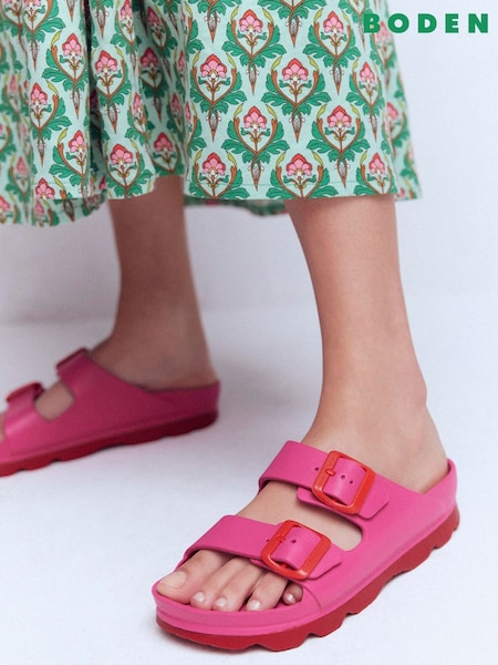 Boden Pink Lyla Double Buckle Sliders