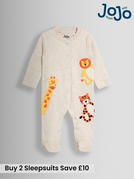 JoJo Maman Bébé Grey Character Appliqué Footed Sleepsuit