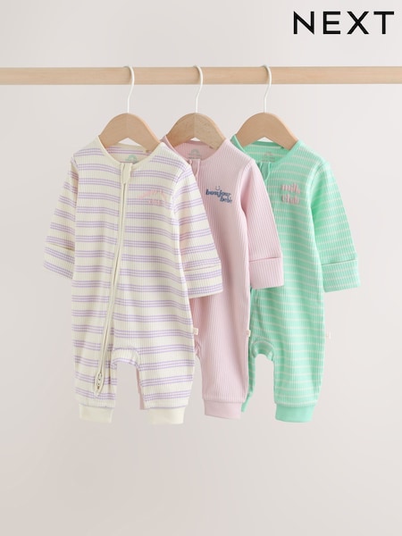 Lilac Purple Two Way Zip Baby Sleepsuits 3 Pack (0mths-3yrs)