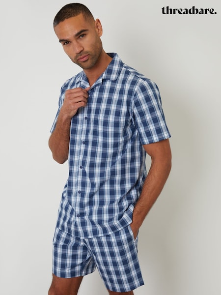 Threadbare Blue Check Pyjamas Short Sleeve Shirt & Shorts Set