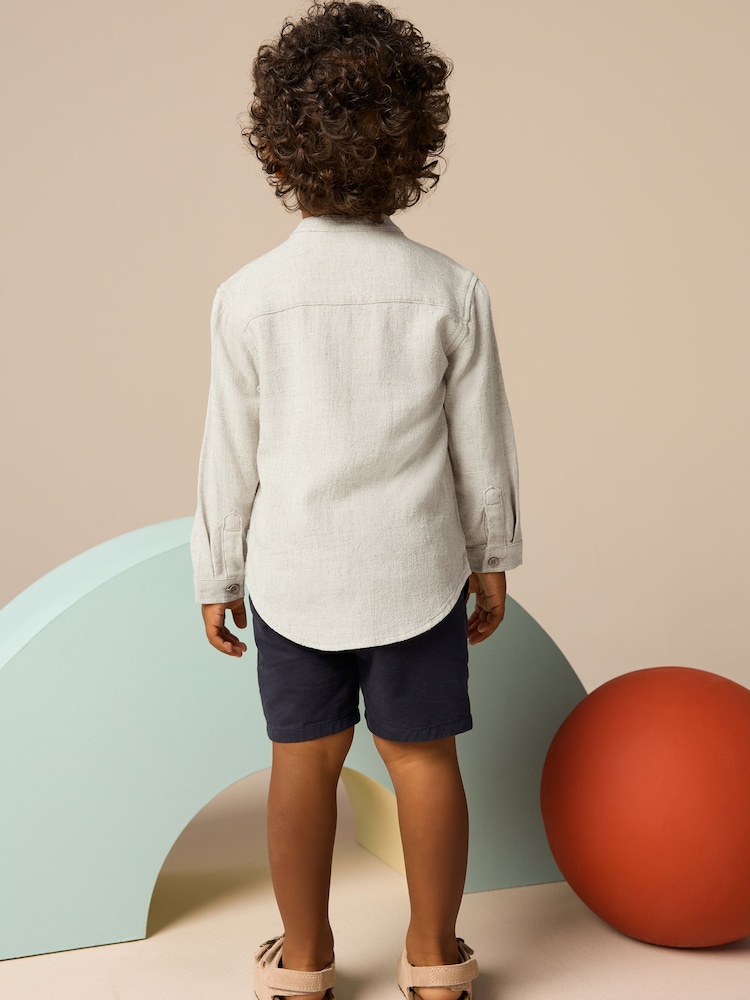 Neutral Grandad Collar Linen Mix Shirt (3mths-7yrs)